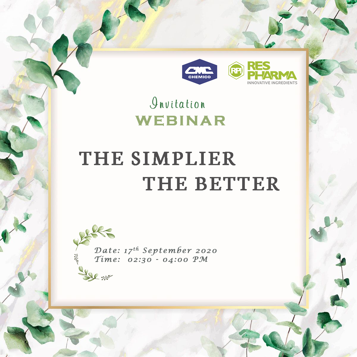 Understanding that eco-friendly lifestyle & green cosmetics will be the new era of beauty care in the future, Respharma in collaboration with Chemico Vietnam Co., Ltd. held a very exciting webinar with the topic “The Simplier, The Better” on September 17th, 2020. During the theory part, the new testing of .....