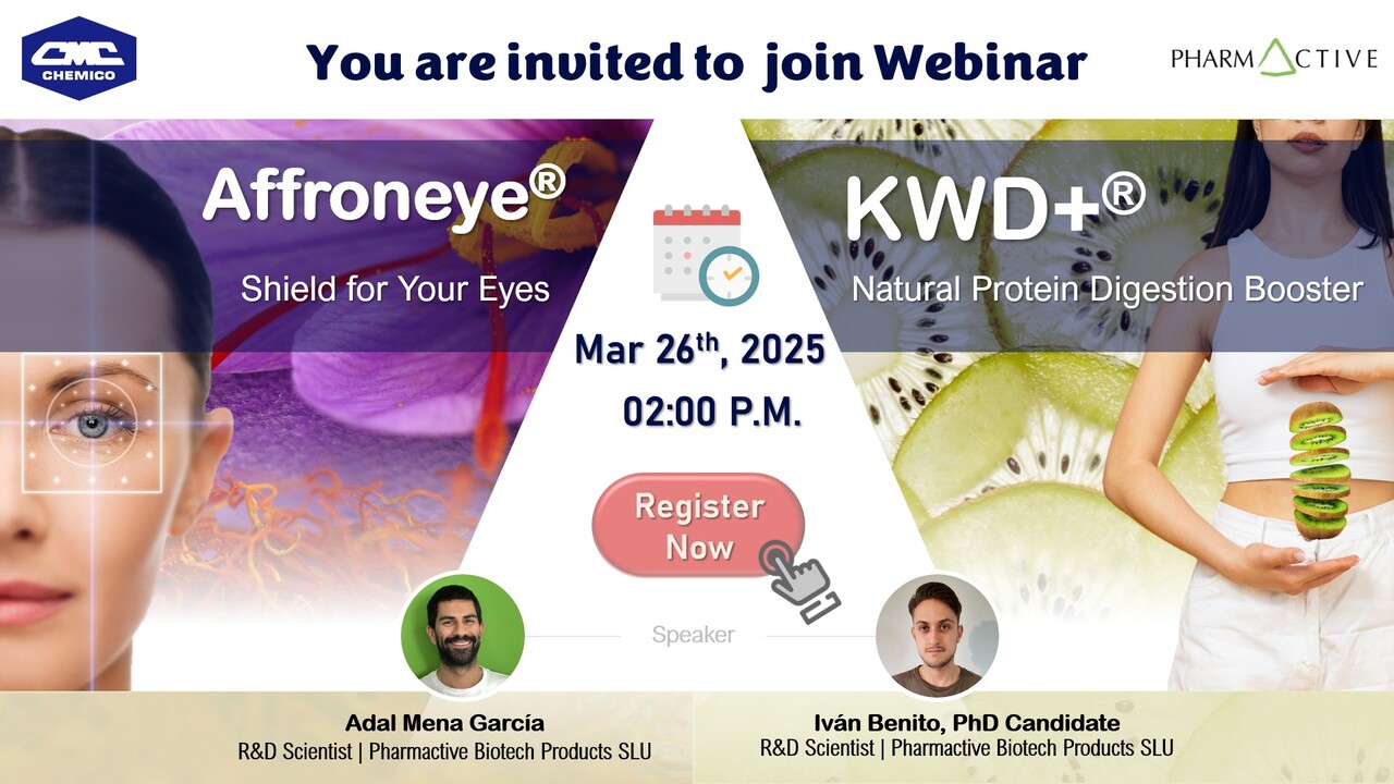 Pharmactive Biotech Products, S.L., Spain in collaboration with Chemico Inter Corporation Co., Ltd., Thailand organized a webinar entitled “Affroneye® Shield for Your Eyes & KWD+® Natural Protein Digestion Booster” on March 26th, 2025.....