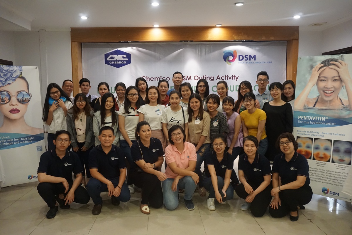 Aim to give big thanks to all dear customers who always support for a successful year, DSM in collaboration with Chemico Vietnam Co., Ltd. held a joyful Outing Activity Day at Binh Quoi 2 Resort on November 22, 2018, Vietnam. Inspired by the innovative topic “House of Nature besides Cloud Block”, most of the games were played outdoor to introduce the powerful of new sun care formulas and UV Camera. Especially, all games were customized to blend with the ingredient’s function as well as new formulas to help customers review the specific ingredients’ knowledge in a very exciting atmosphere.