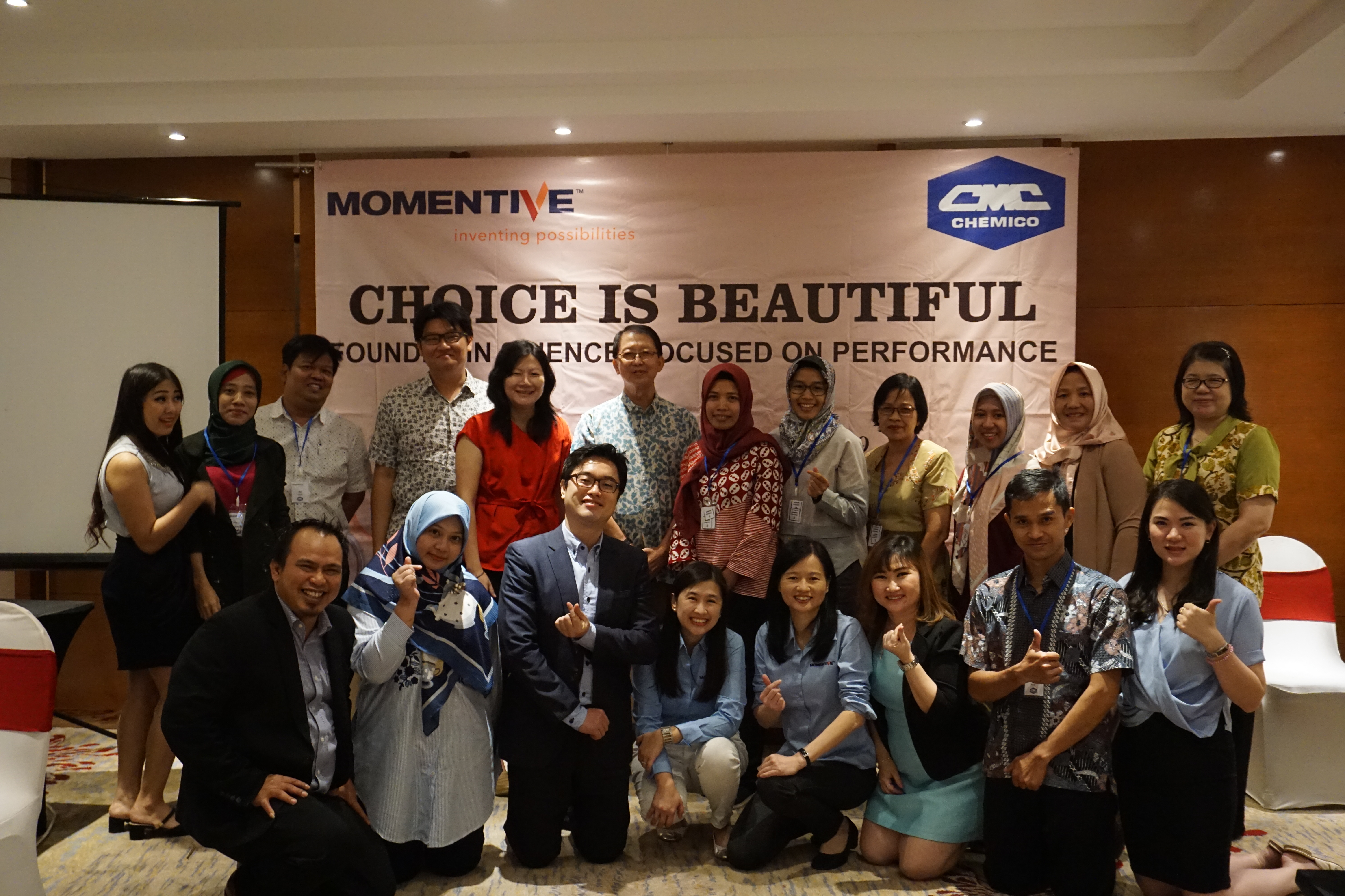 Momentive Performance Materials Inc. and PT. Chemico Surabaya organized seminars on May 22-23, 2019 in Central Java, Indonesia under the same topic Choice is Beautiful, Founded in Science, Focused on Performanceat Gumaya Hotel, Semarang and Tentrem Hotel, Yogyakarta, respectively. The seminar presented information about Momentive new products and innovations for skin care, make up and hair care products. In this opportunity we introduced Velvesil E-Gel PMF Emulsion, Silsoft E-Pearl PMF Emulsion, Velvesil Magic B Gel and Silsoft EAU Microgel. We also performed simple demonstration using Velvesil E-Gel PMF Emulsion, and Silsoft E-Pearl PMF Emulsion, as well as workshop using Silsoft EAU Microgel.