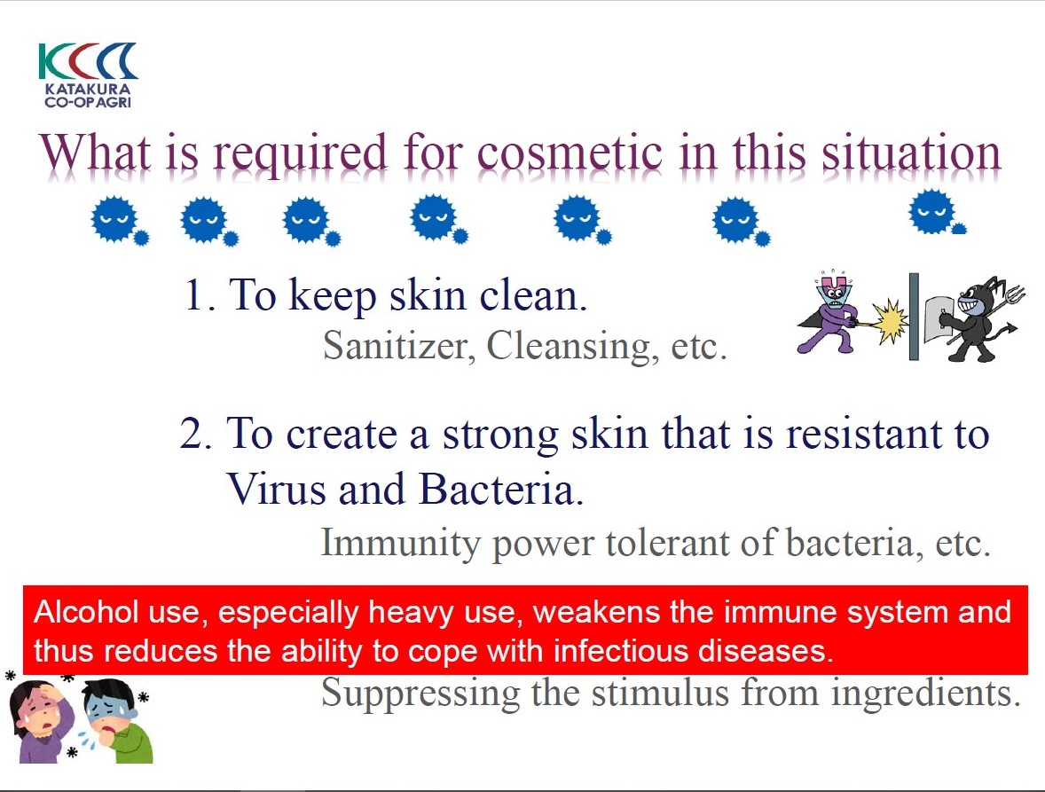 Katakura & Co-op Agri Corporation teamed up with Chemico Asia Pacific (M) Sdn. Bhd., Malaysia to conduct a webinar to bring awareness on the use of alcohol in hand sanitizers and potential negative impact of its continuous usage as well as the ingredients that could be used to improve the health of skin. The webinar was held on July 17th, 2020 with the customers from 23 companies joined the event.