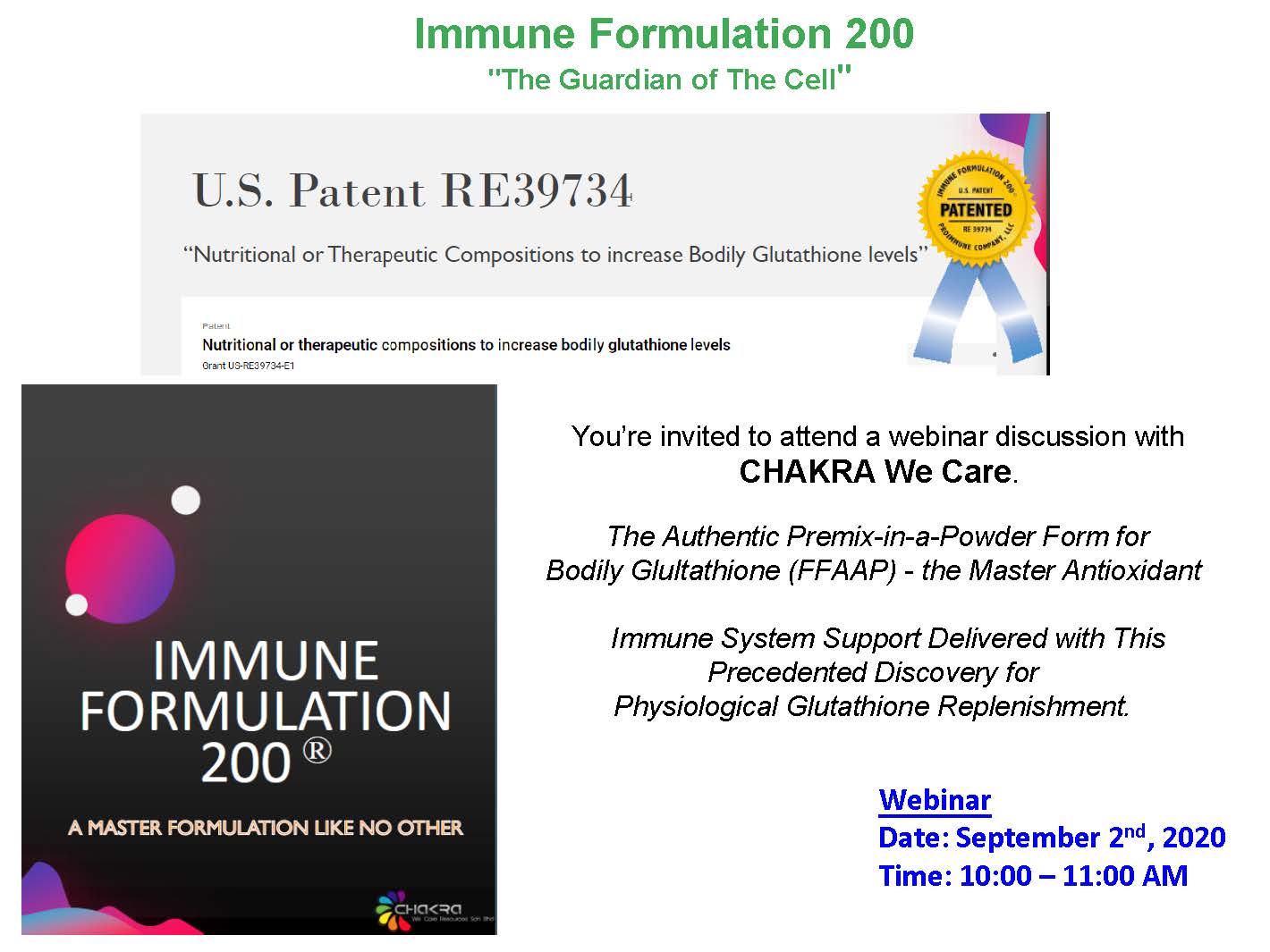 Chakra We Care Resources Sdn Bhd, Malaysia in collaboration with Chemico Inter Corporation Co., Ltd. jointly organized a webinar entitled “Immune Formulation 200® (The Guardian of the Cell)” on September 2nd, 2020. The webinar provided glutathione& its importance, Immune Formulation 200®, comparison between Immune Formulation 200® and other glutathione products, research studies and market products which can help in the development of new products in food and dietary supplement.