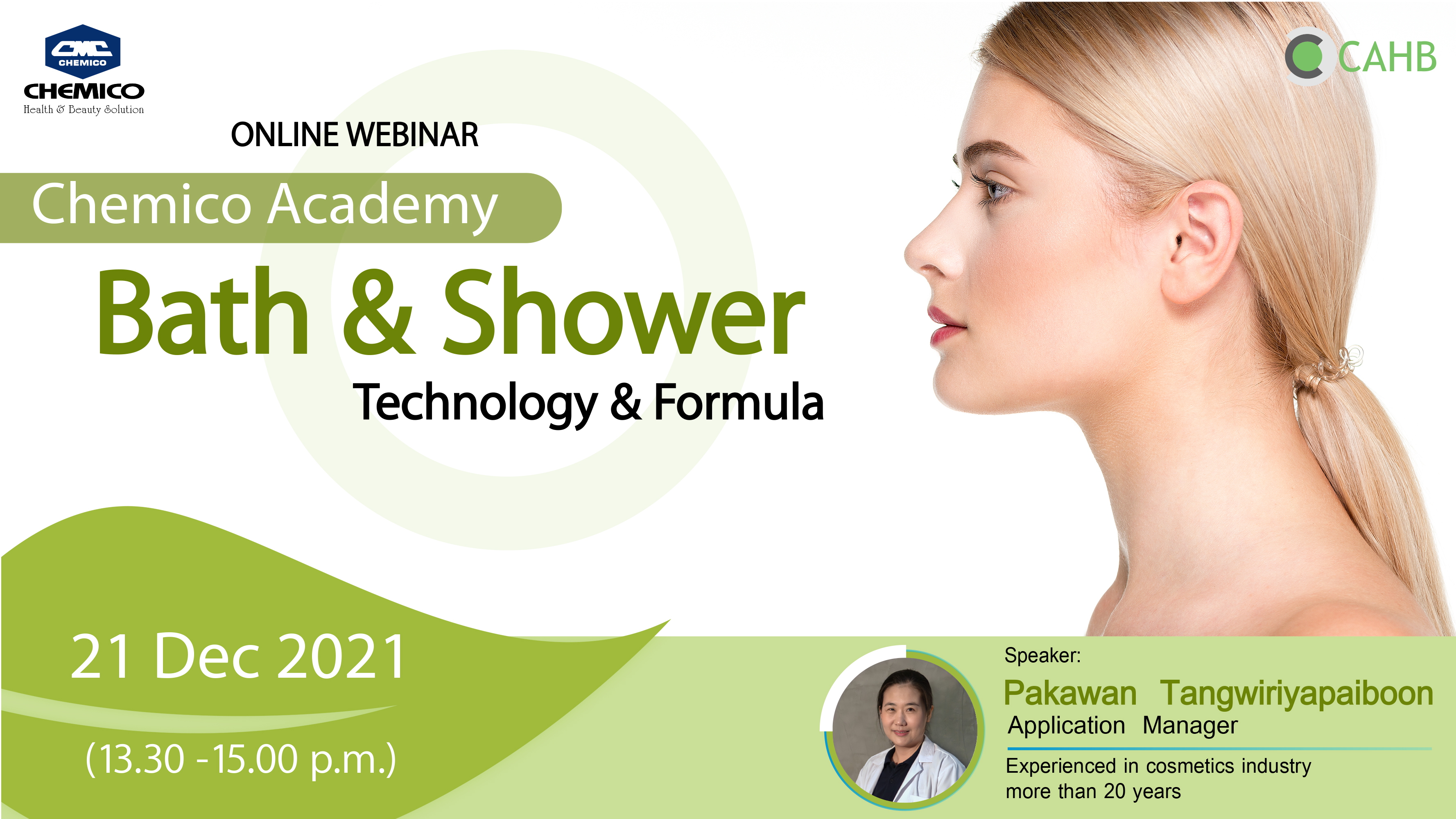 Chemico Asia Health and Beauty (CAHB) Center, a member of Chemico group held a webinar for Academy entitled “Bath & Shower Technology & Formula” on December 21st, 2021.  Attendants were lecturers, professors and students. Ingredients and formulas related to the topic were introduced during the webinar.