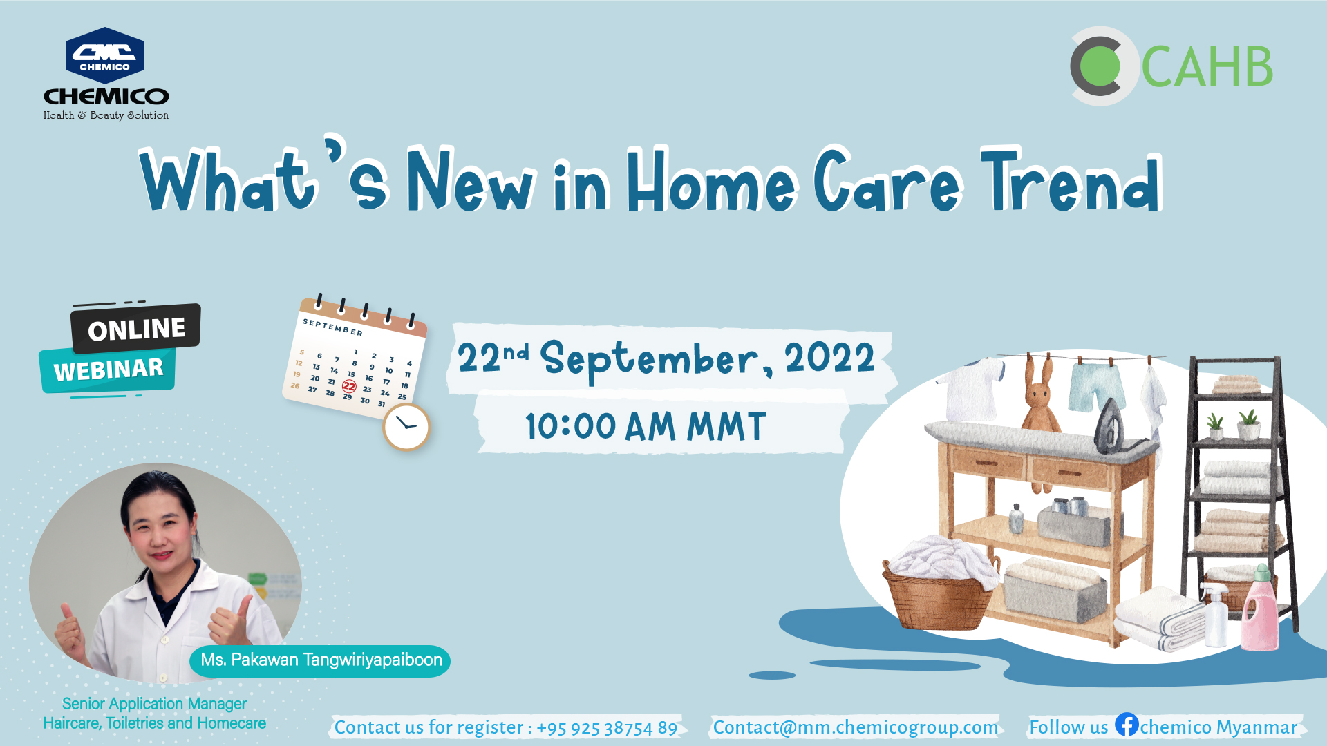 Chemico Myanmar Co., Ltd. organized an interesting webinar on September 22nd, 2022 under the topic “ What’s New in Home Care Trend.” The webinar presented home care trend, updated the overview of home care in Myanmar and talked about information of home care raw materials. Attendees were interested and participated in Q&A and sample request section as well. All requested samples and documents will be distributed to the customers after the webinar.