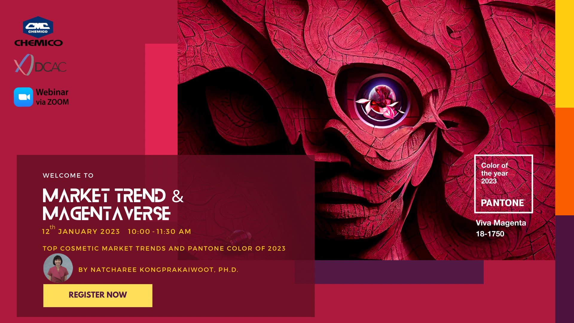 DCAC center, Thailand, a member of Chemico group organized a makeup webinar for Thai customers entitled “Welcome to Market Trend & Magentaverse” on January 12, 2022. The seminar covered Color cosmetics trends 2023, Pantone color of the year 2023 “Viva magenta” and Makeup formulations with Magenta color.