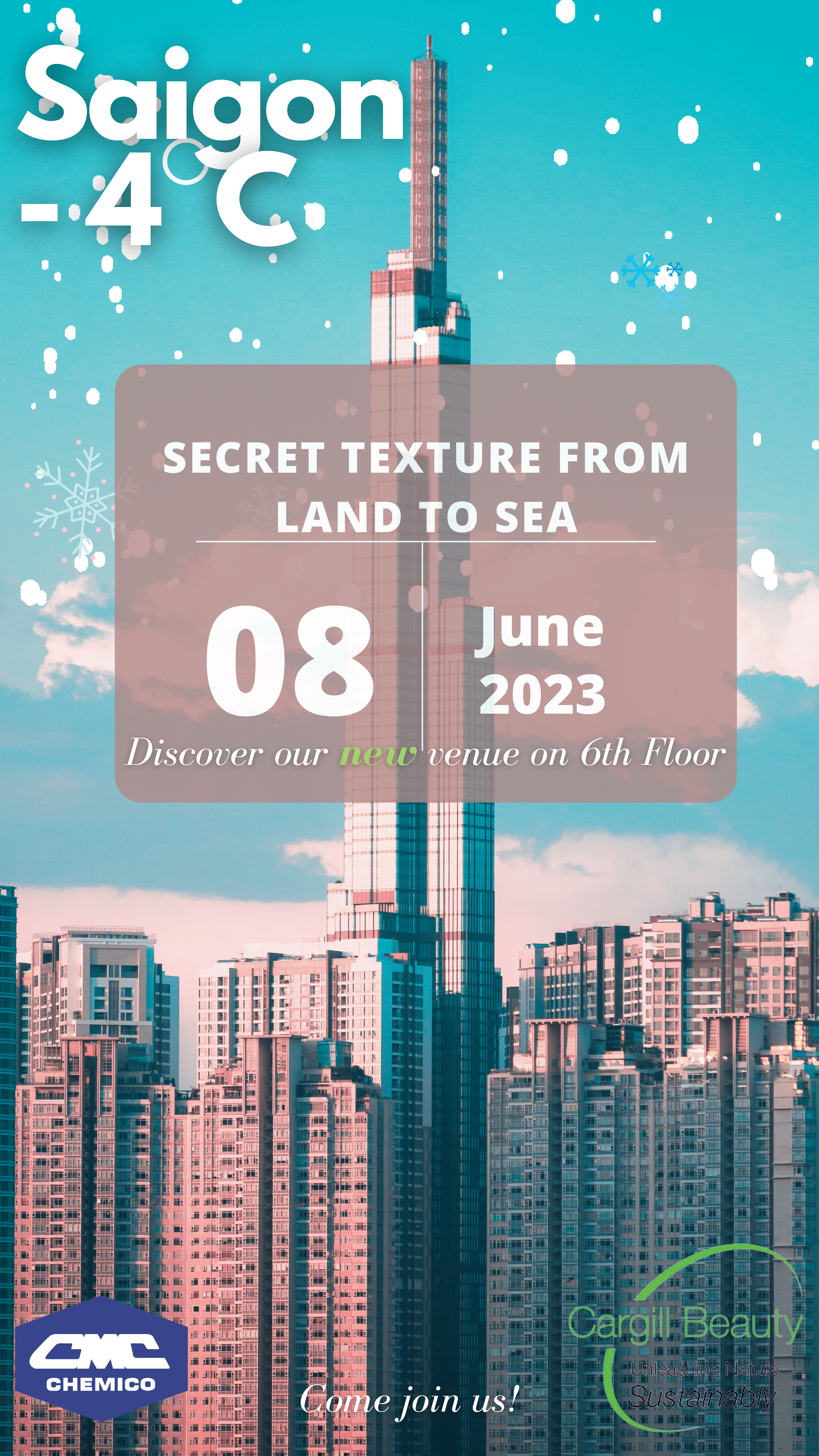 CARGILL Inc. in collaboration with Chemico Vietnam Co., Ltd. organized a seminar entitled “SAIGON -40C, SECRET TEXTURE FROM LAND TO SEA” to erase the current hot weather as well as present the innovative ingredients from nature. We also took this chance to introduce our supplier, Cargill and update new beauty trends 2023. The main content of the seminar was all about Actigum series, Carrageenan and the related successful story. Besides the theory part, the attendees could explore the secret texture inspired from land to sea.