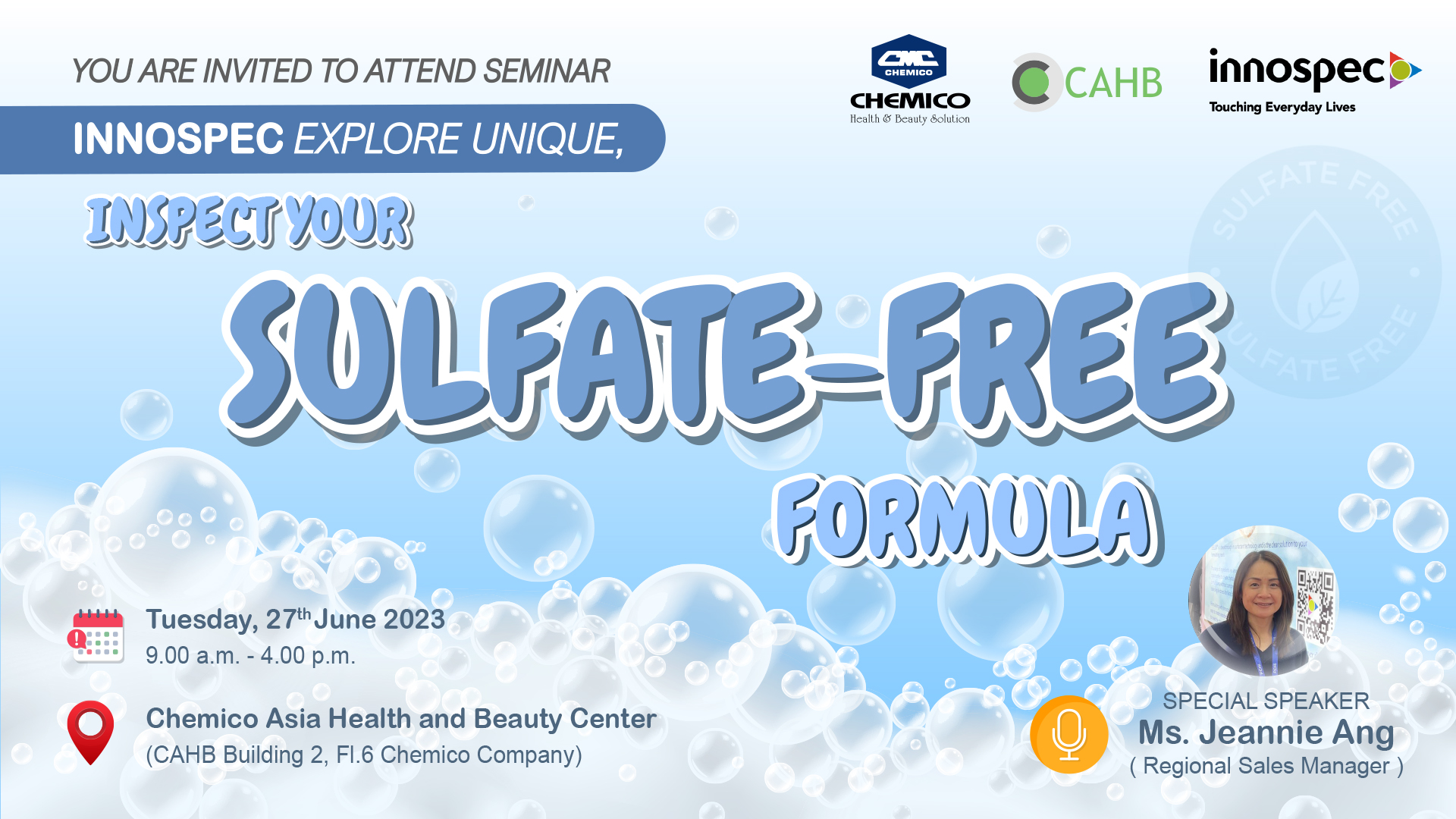 Innospec Inc. in collaboration with Chemico Inter​ Corporation Co., Ltd. held a seminar​ and workshop on June 27th, 2023 under the title “Innospec​ Explore​ Unique, Inspect You​r Sulfate-Free​ Formula”. This seminar is to​ introduce​ global​ macro and​ micro​ trends, surfactant​s for​ sulfate-free​ products including new product launched​ as well as formulation​s for​ each​ trend​s.​ During the​ seminar​, customer​s​ could try​ market​ sample​s, sustainable​ formulations​ and​ making formulations related to the trends. Instruments for hair care efficacy testing were demonstrated as well.