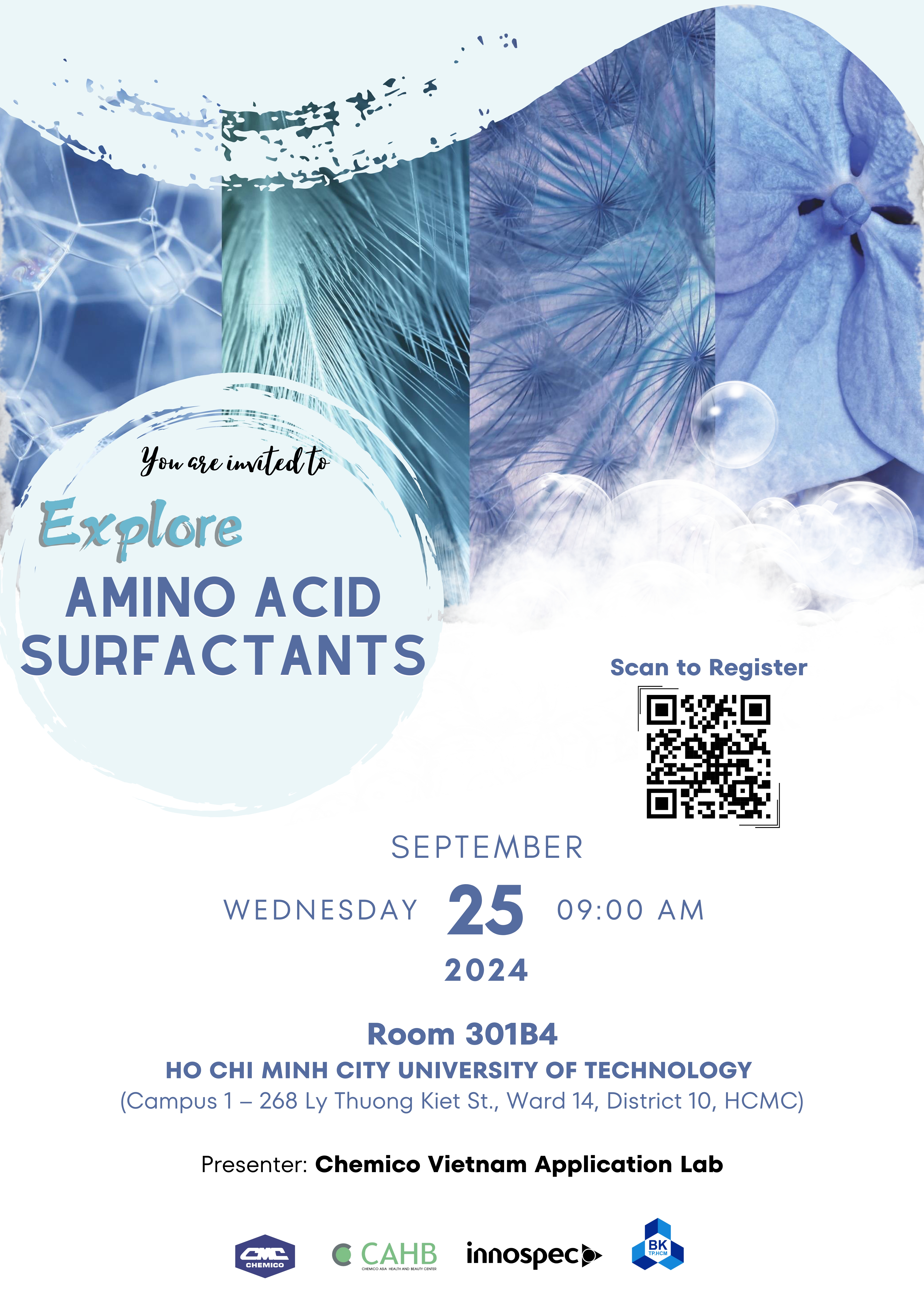Chemico Vietnam Co., Ltd. in collaboration with Ho Chi Minh City University of Technology held a mini seminar on September 25th, 2024. The title was “Explore Amino Acid Surfactants”. This was a chance to update the latest surfactant trends and share all innovative ingredients from Innospec and their practical applications.