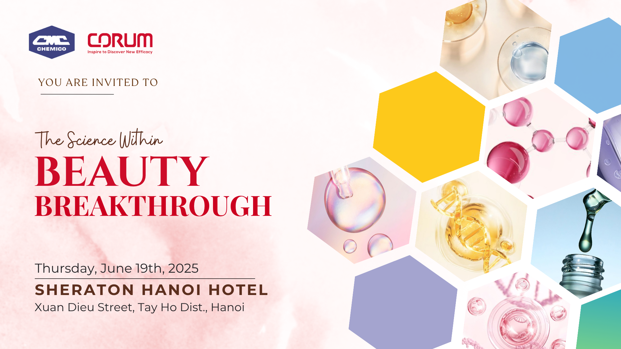 Corum Incorporation in collaboration with Chemico Vietnam Co., Ltd. organized a seminar on June 19th, 2025 at Sheraton Hanoi Hotel. Inspired by the topic “Breakthrough Beauty – The Science Within”, the seminar shared the latest beauty trends as well as the new solutions for advanced whitening, acne and anti-aging products. The attendees also experienced the series of skin care prototypes developed by Chemico Vietnam Application team.